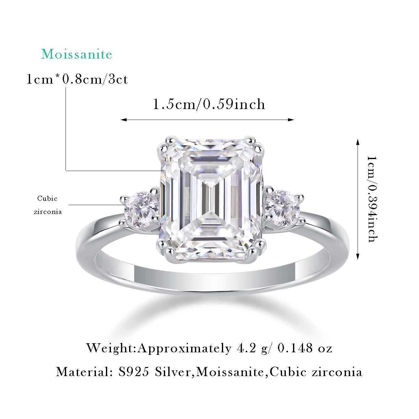 Sterling Silver Square Moissanite Ring Luxury Design Micro Pave Setting Moissanite Men Ring Jewelry for Groomsmen