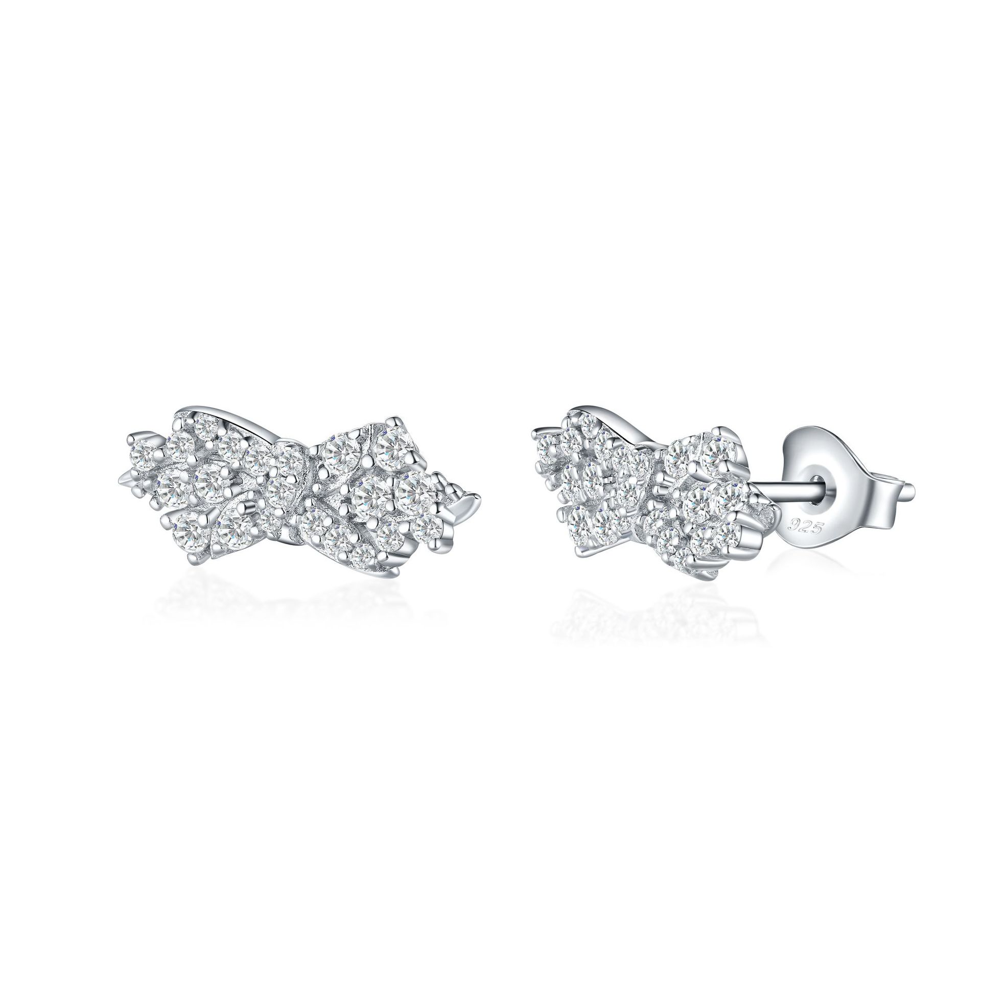 Sterling silver zircon bow stud earrings fashion full diamond zircon earrings