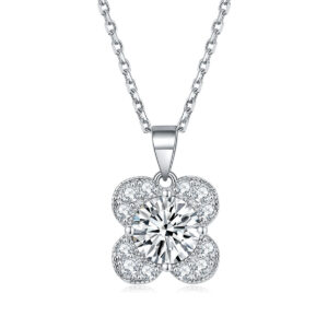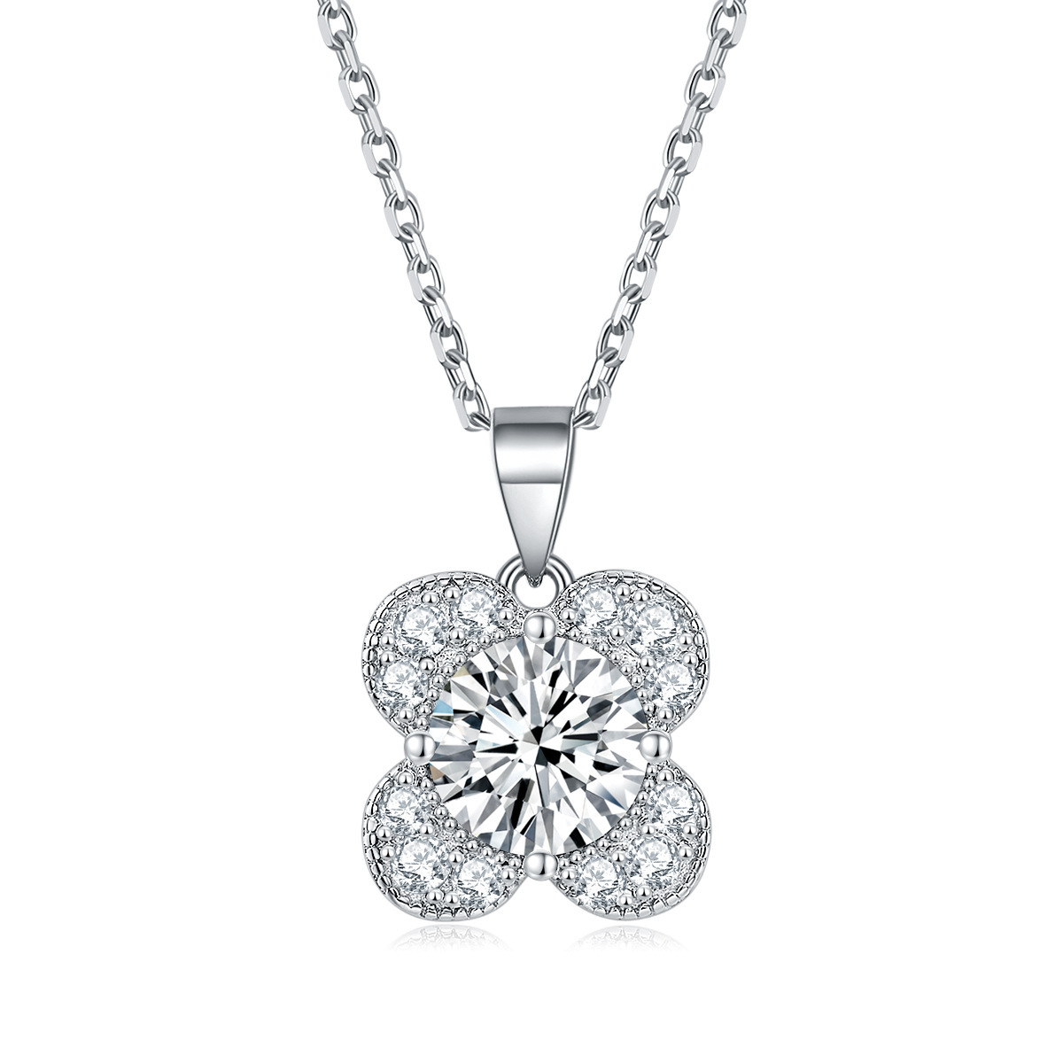 Sterling silver zircon colored gemstone emerald euro pendant aquamarine clover 925 silver necklace female niche wholesale ins