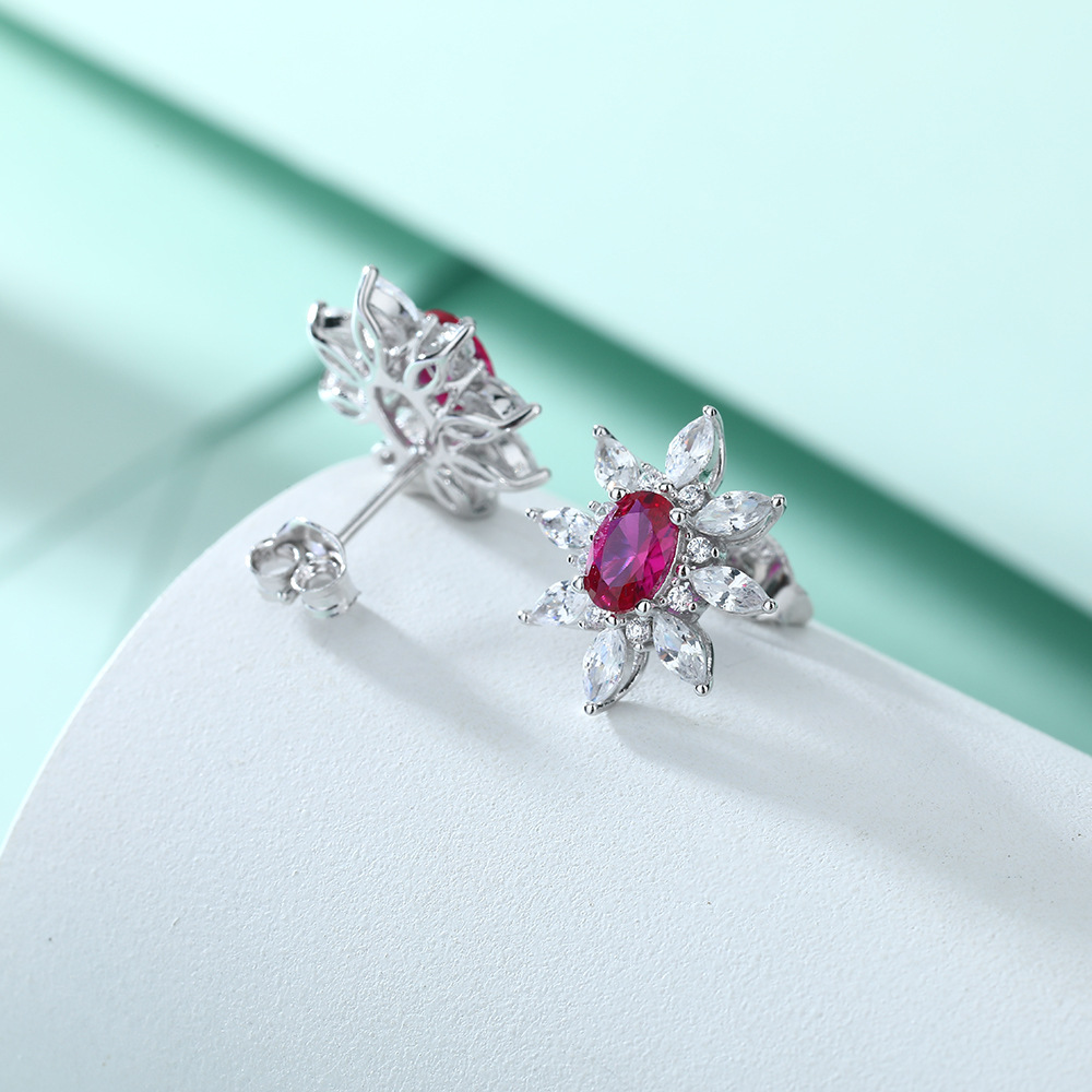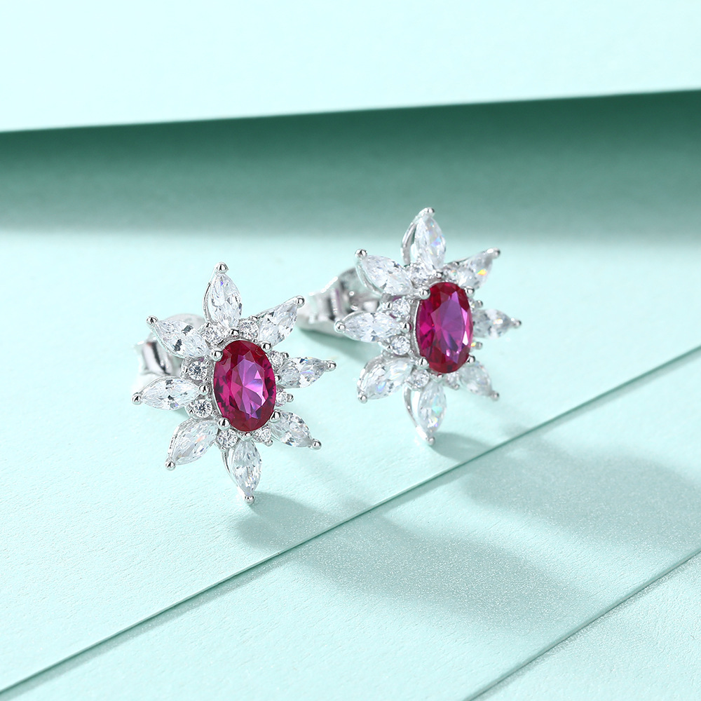 Sterling silver zircon flower sunflower stud earrings star eight-pointed star ruby 925 silver earrings