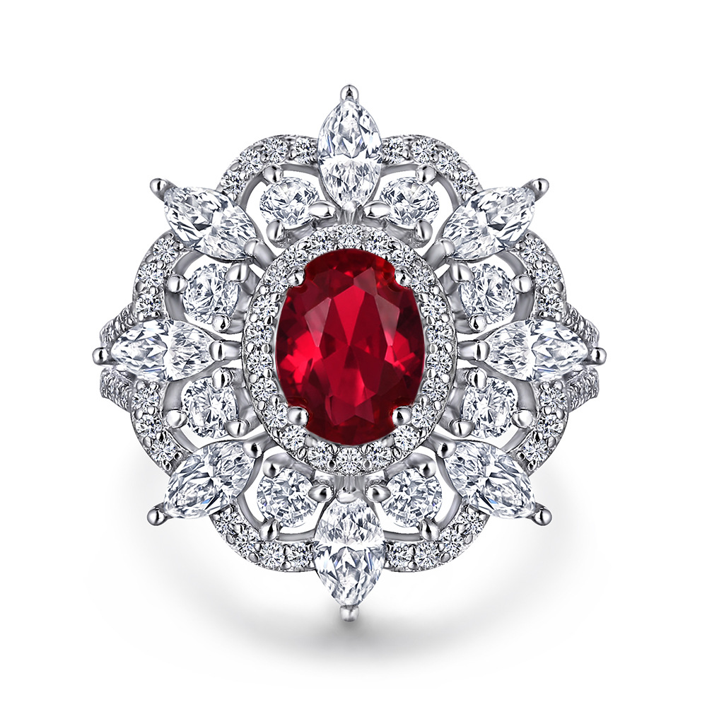 Stone/Stone Position: 98 small stones, main stone 6 * 8mm (1.5 carats) ring; 32 small stones, 2 main stones 4 * 6mm (0.5 carats) earrings; 60 small stones, 6 * 8mm (1.5 carats) main stone necklace