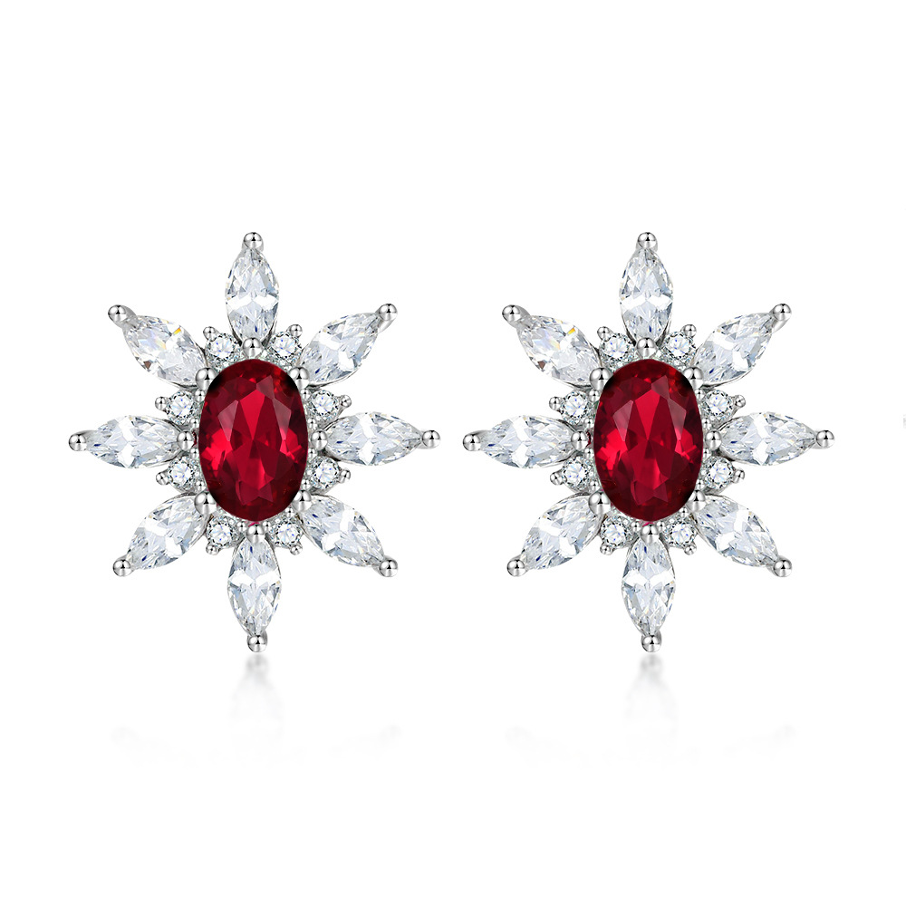Sunflower Earnail Colorful Treasure Ring S925 Pure Silver Ruby Necklace Jewelry Set