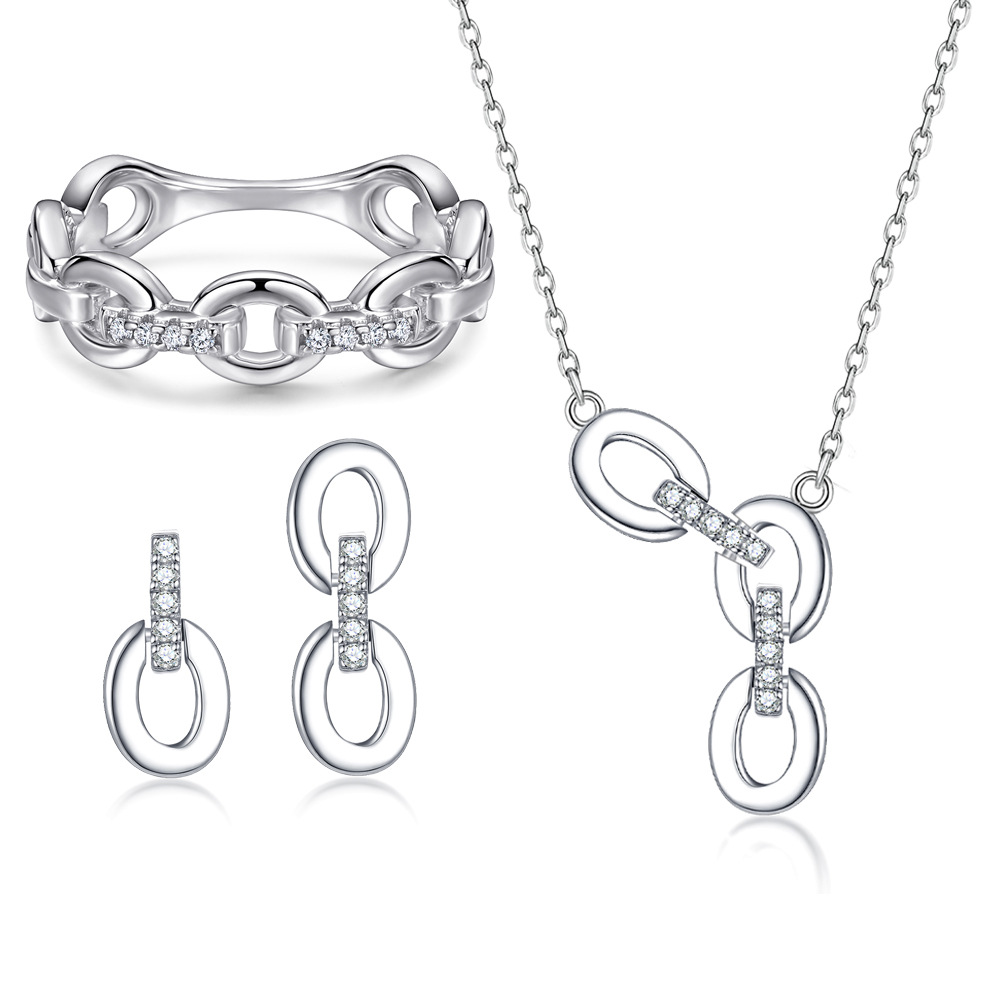 925 sterling silver jewelry set row of diamonds zircon ring European American earrings fashion necklace