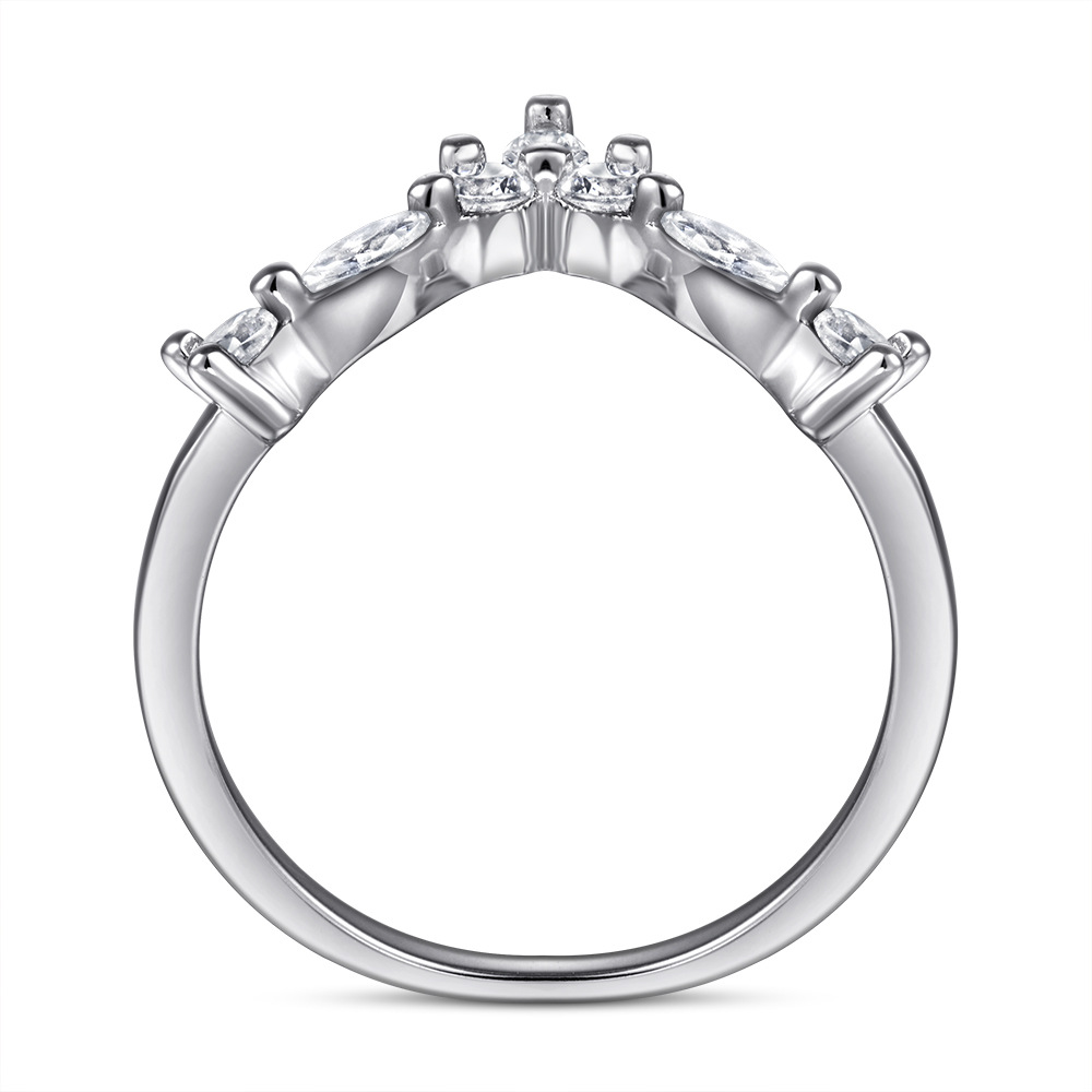 The popular 925 sterling silver crown zircon ring women’s niche European and American fashion V-shaped tail ring jewelry