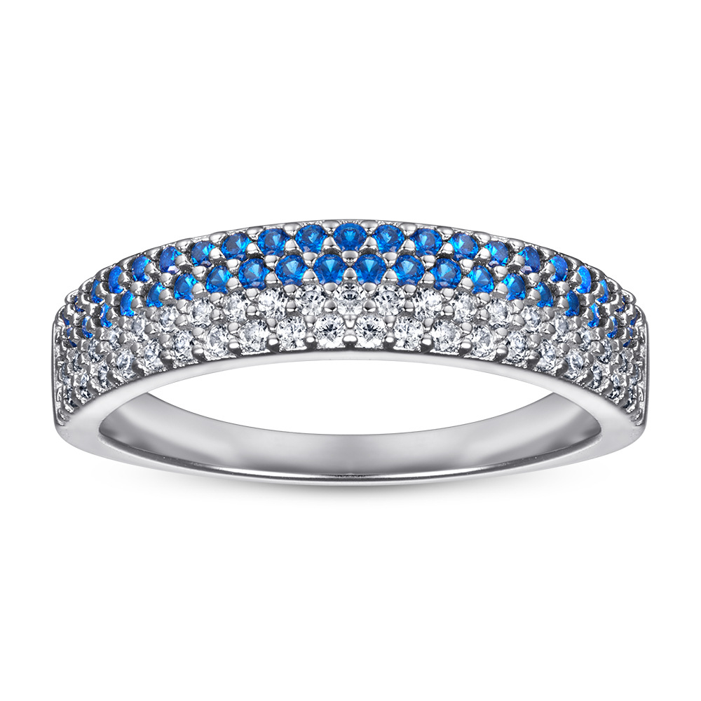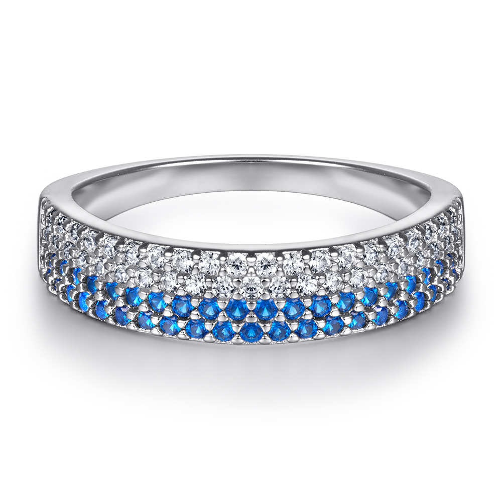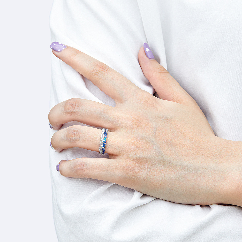 Tonglin S925 sterling silver ring women’s European and American fashion blue crystal white zircon ring fashion diamond ring jewelry