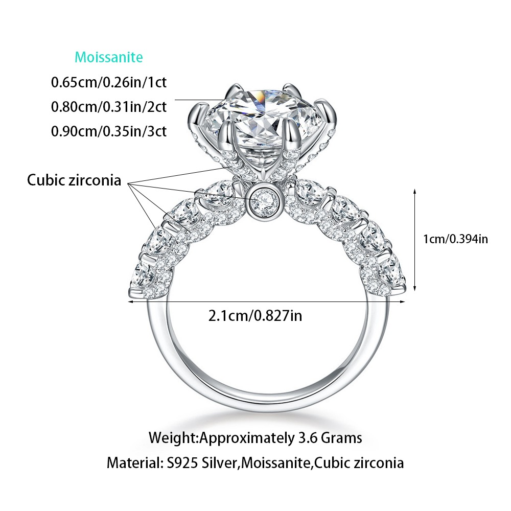 Moissanite Ring Silver Jewelry Women Gift Party Sterling Stone Wedding Technology party