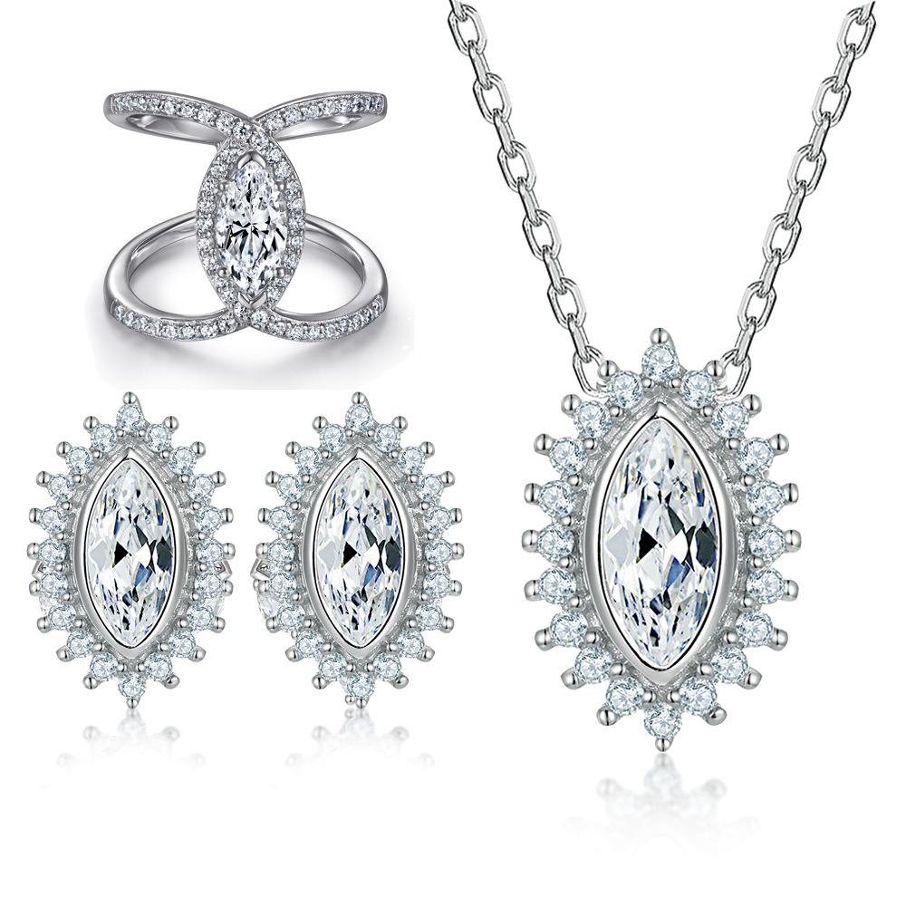Stone/Stone Position: 54 small stones, main stone 5 * 10mm (1 carat) ring; 40 small stones, 2 main stones 3 * 6mm (0.3 carats) earrings; 18 small stones, main stones 4 * 8mm (0.5 carats) necklace