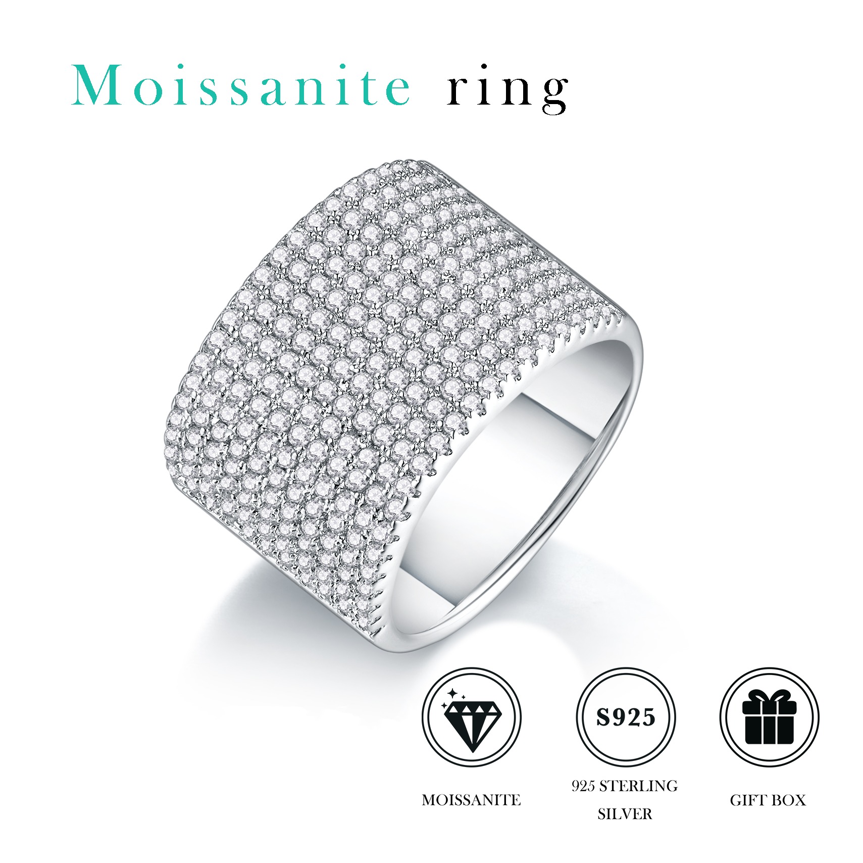 Women Mossinate Diamond Jewelry 925 Sterling Silver Ring 1ct Carat Diamond Moissanite Ring