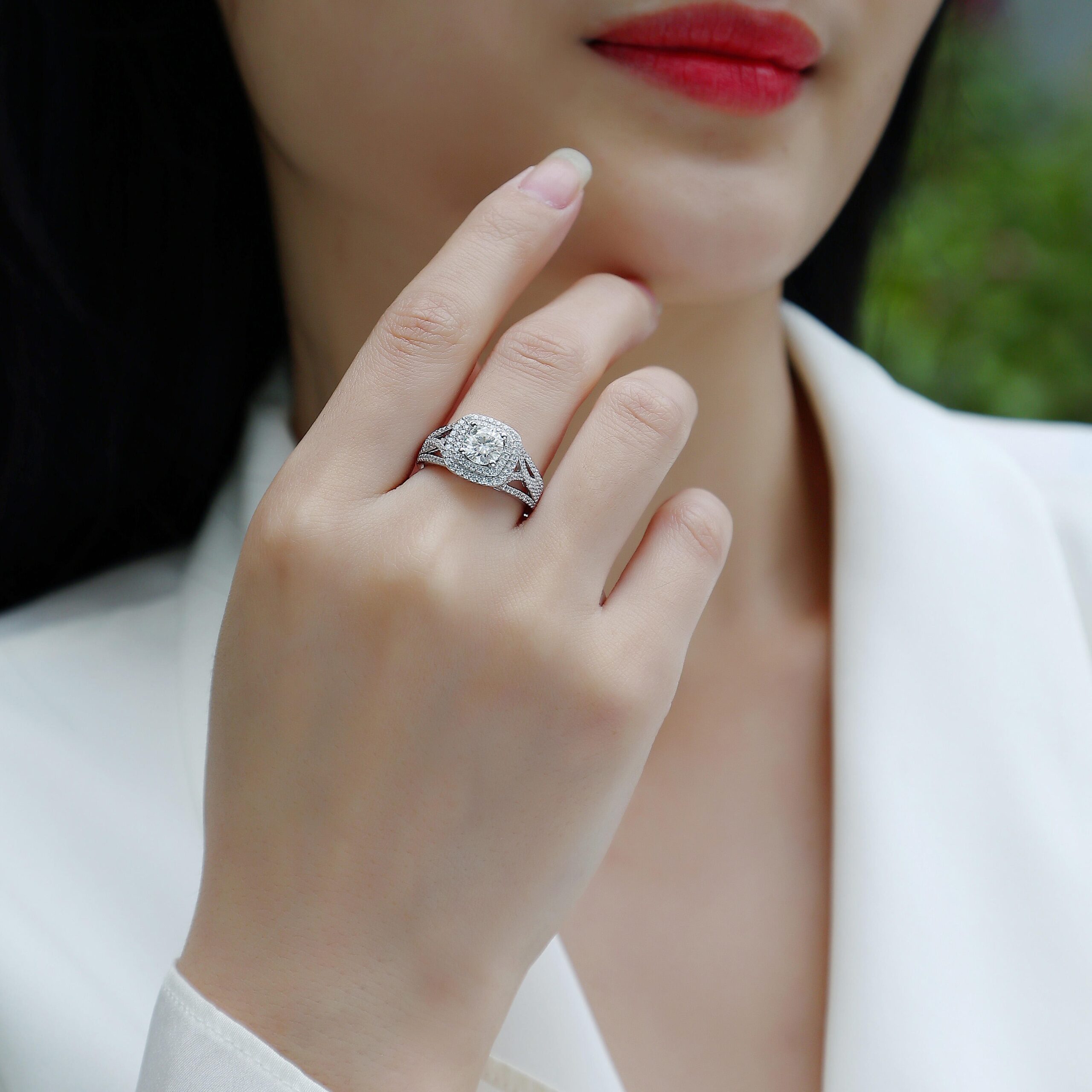 Women Mossinate Diamond Jewelry 925 Sterling Silver Ring 1ct Carat Diamond Moissanite Ring