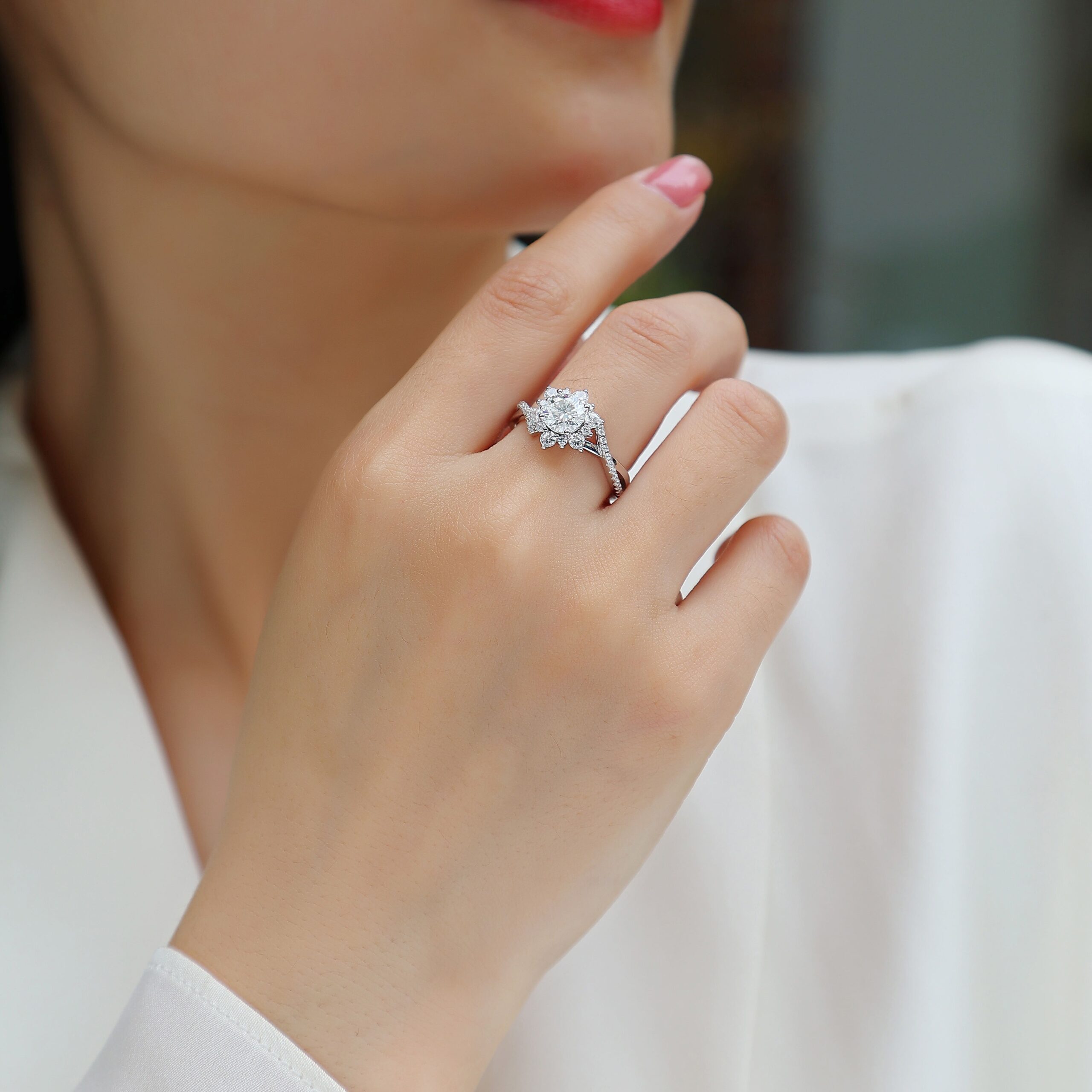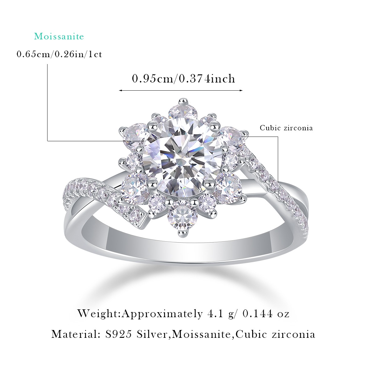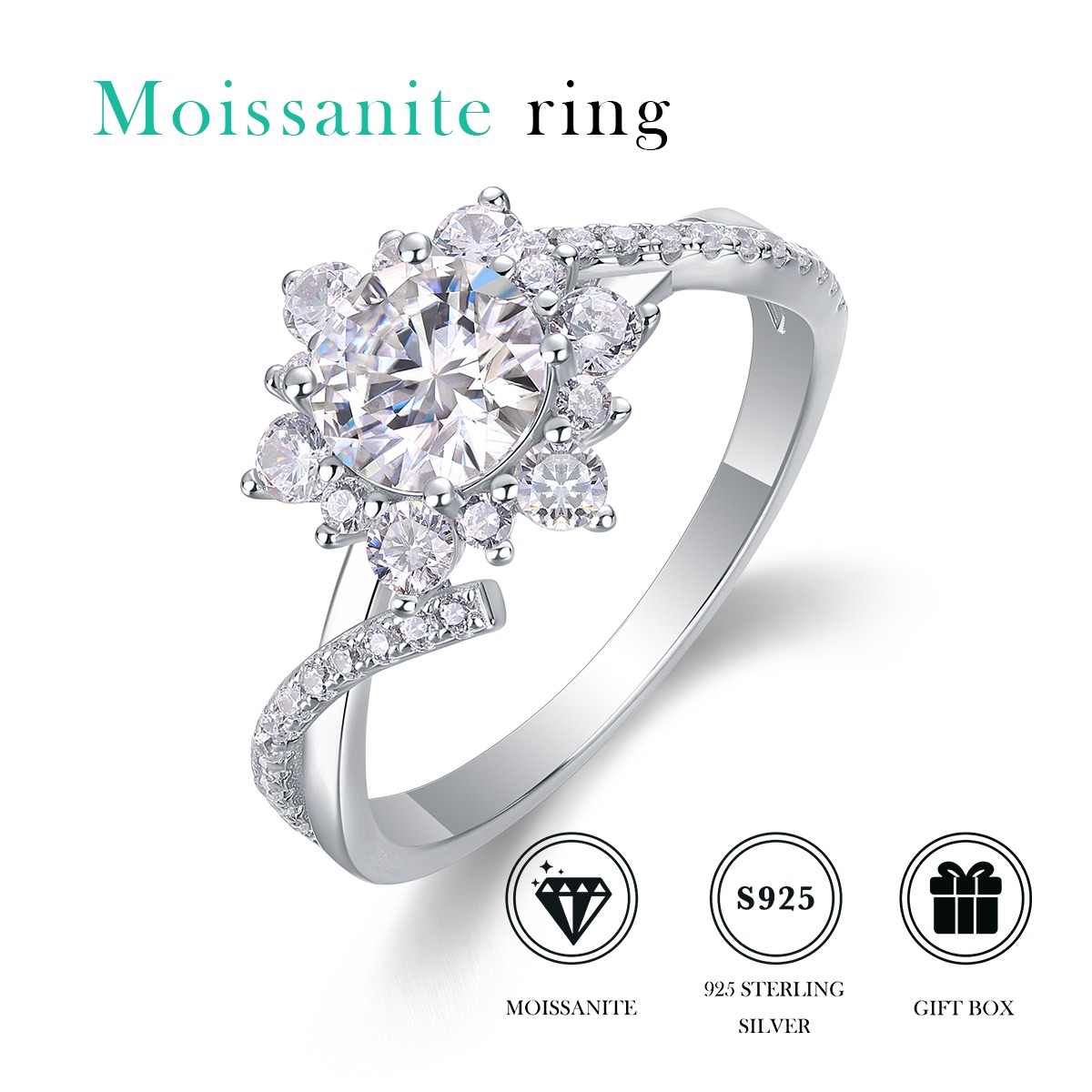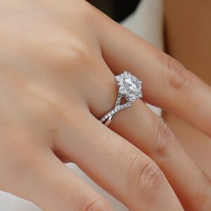 Women Mossinate Diamond Jewelry 925 Sterling Silver Ring 1ct Carat Diamond Moissanite Ring
