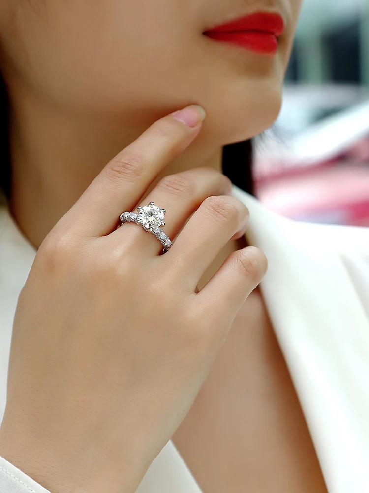 Six-claw Women’s Engagement Ring Round Cut Moissanite Ring 925 Sterling Silver Classic Wedding Anniversary Ring