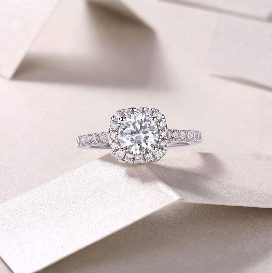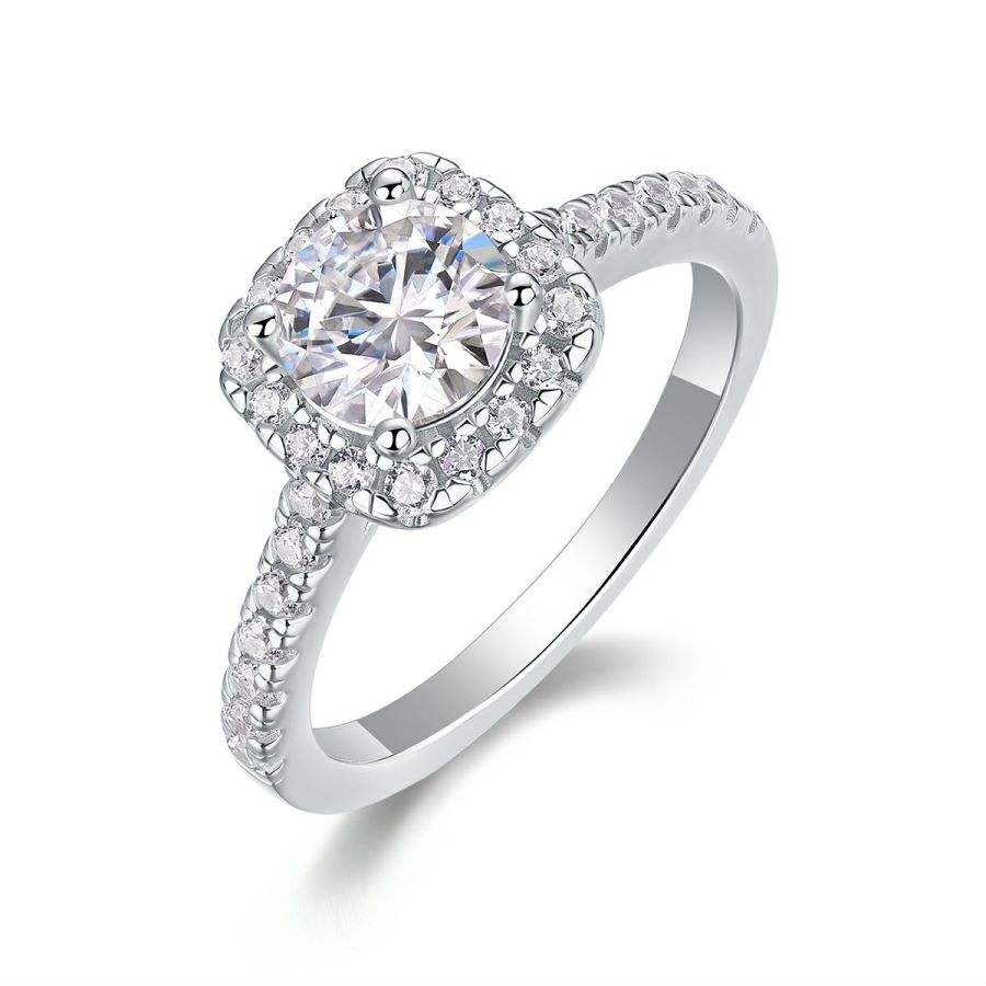 S925 sterling silver jewelry set European and American zircon square diamond ring necklace ins square stud earrings