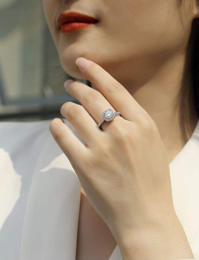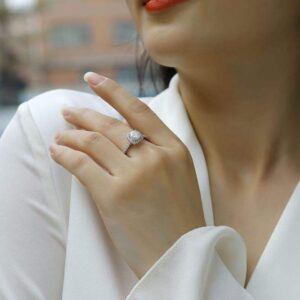 Women’s Luxury 18K White Gold Plated Semi Eternity Wedding Ring 925 Silver Real GRA VVS 1ct Moissanite Pearl Bridal Accessory