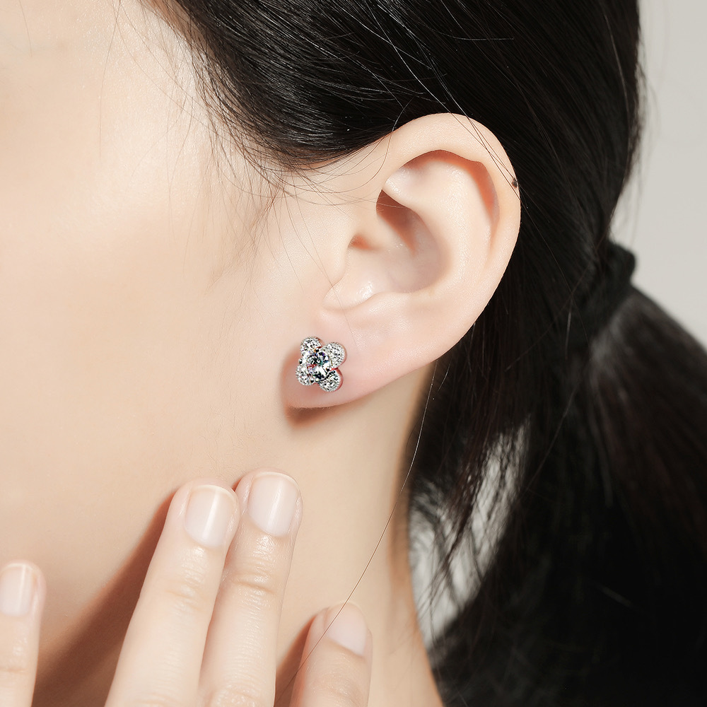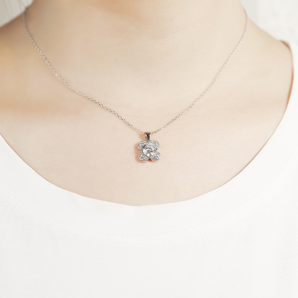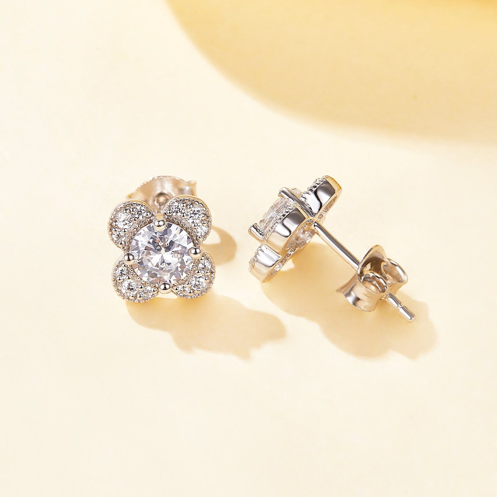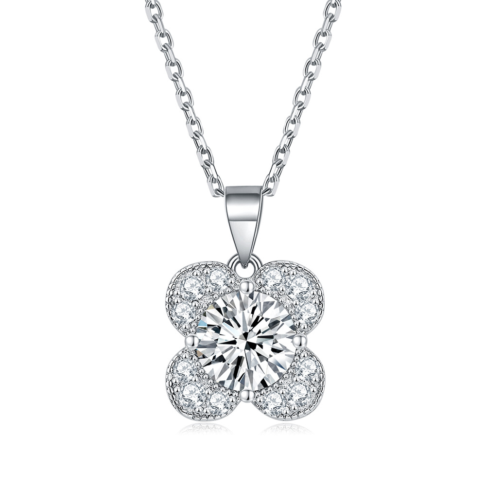 Zircon Diamond Ring 925 Sterling Silver Ring Clover Necklace Female Niche Design Diamond Flower Stud Earrings Jewelry Set