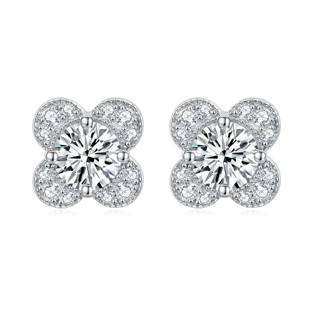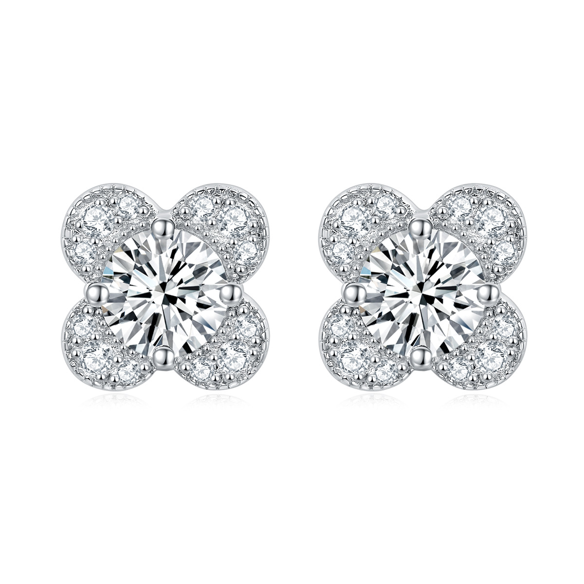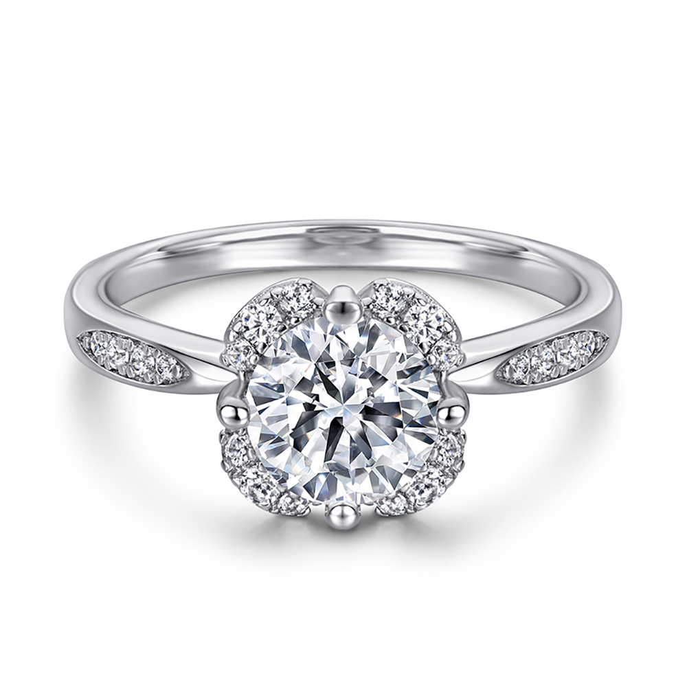 Zircon Diamond Ring 925 Sterling Silver Ring Clover Necklace Female Niche Design Diamond Flower Stud Earrings Jewelry Set