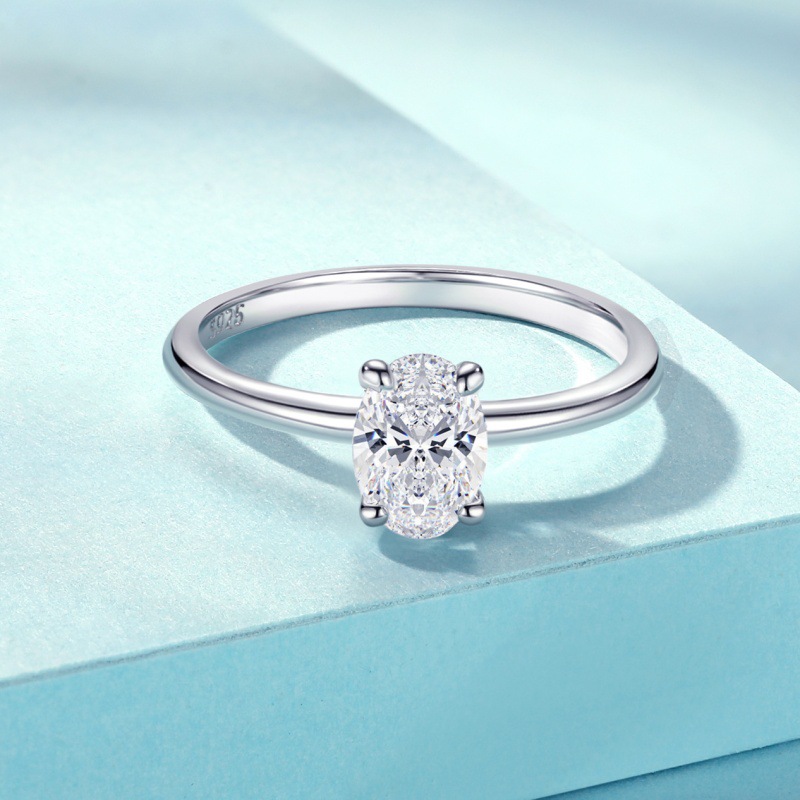 Zircon Ring Women S925 Sterling Silver Four-claw Egg-shaped Ring
