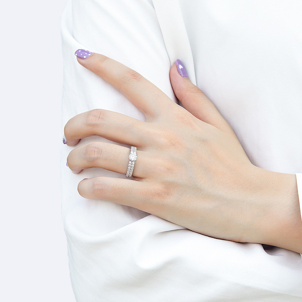 925 Sterling Silver Moissanite Ring 2 Piece Stackable Wedding Engagement Ring with Certificate