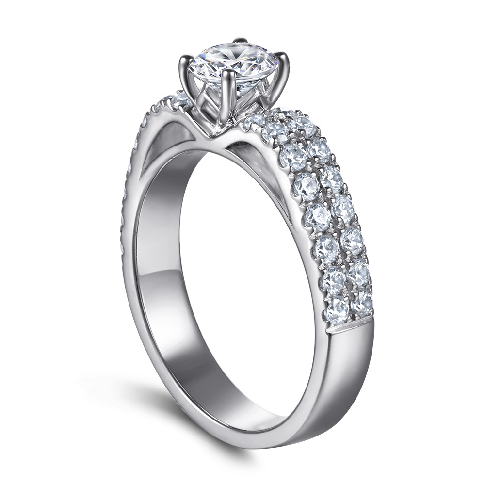 Zircon rings women’s S925 sterling silver four-prong double-row diamond wedding rings